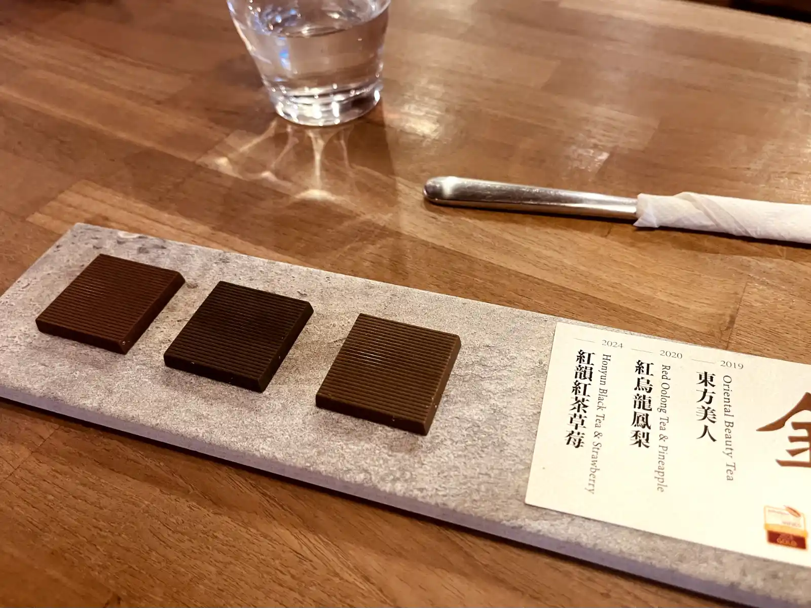所以對我來講,「茶巧克 ChaChoco」的澀味真的挺明顯的,尤其是氧化程度較低的綠茶或包種茶的口味,澀到我分辨不太出他們的差異。