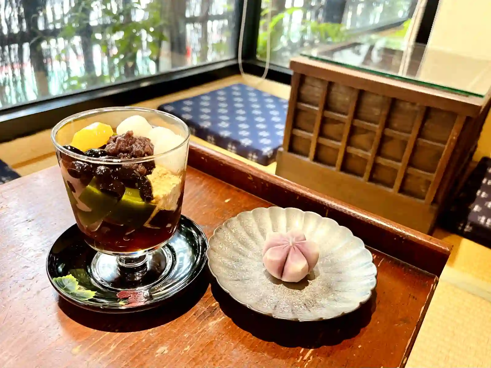 - 其他特色:充滿季節感的和菓子、現刷抹茶
